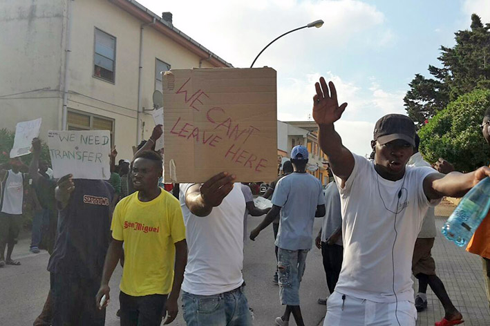 Palmadula. Protestano da questa mattina e minacciano di passare la prossima notte direttamente in strada. Sono i migranti accolti nelle scorse settimane nella borgata di Palmadula ed ospitati in un agriturismo adattato per l’occasione. “We need transfer” (“Abbiamo bisogno di andare via”), “We are dying here” (“Qui stiamo morendo”) e “We can’t leave here” (un errore, in realtà “live”, “Non possiamo vivere qui”) sono solo alcune delle scritte affidate a cartelli e striscioni improvvisati scritti col pennarello su fogli di cartone. I migranti lamentano inoltre che la struttura che li ospita è inadeguata e che potrebbe accogliere al massimo una sessantina di persone, non invece le oltre 110 arrivate nella borgata a 30 km dal centro di Sassari.