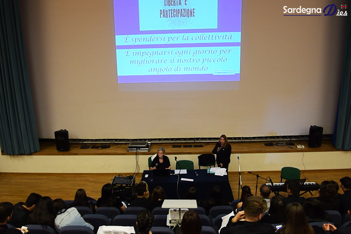 In apertura di conferenza si è esibito il coro interscolastico diretto da Vincenzo Cossu. Subito dopo le donne presenti nell’auditorium hanno dato vita al flash mob “Su muccadore”, per riaffermare l’identità femminile (il fazzoletto della tradizione sarda si può togliere e rimettere a piacimento, senza alcuna imposizione) ma anche per ricordare l’episodio del 1969, quando le donne di Orgosolo, con un’occupazione durata sei giorni, impedirono che i terreni di Pratobello venissero trasformati in poligoni di tiro.