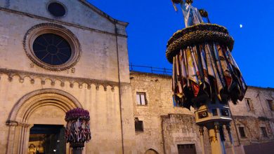 La storia. Il Gremio dei Viandanti (li viaggianti) nasce da una scissione dell’antico Gremio dei Carradori, in origine l’associazione d’arti e mestieri che curava e amministrava tutti coloro che trasportavano merci con carri (ancora oggi, tra i sassaresi più anziani, è rimasta infatti l’espressione “carrattuneri”). Lo statuto dei Gremio dei Viandanti risale al 30 giugno 1633 e fu compilato dal notaio Gavino Tolo. Con il regolamento, il Gremio fece una convenzione con i frati agostiniani della chiesa di Sant’Agostino, in cui il Gremio ha sede dal 1477. In occasione della festa del Corpus Domini avviene il sorteggio, secondo la consuetudine antica, delle cariche gremiali, che diventano operative con la Festa di Nostra Signora del Buon Cammino la seconda domenica di agosto. Tale consuetudine risale al 30 giugno 1633 quando il notaio regio Gavino Tolo stipulò l’atto di passaggio dalla Confraria de Itria alla Confraria de los Biandantes. Il Gremio partecipò alla Discesa dei Candelieri con la sola bandiera (stendardo) fino al 1941. Solo allora fu preso possesso dell’antico cero dei Carradori, ormai scomparsi, che dal 1978 viene portato alla Discesa ad anni alterni con un secondo e più recente candeliere.