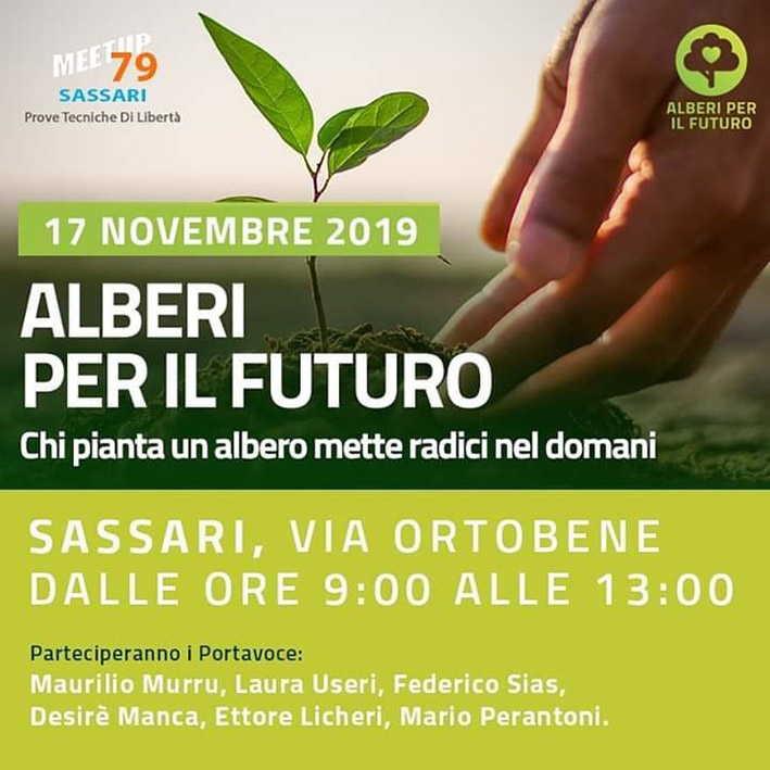 Sassari. «Per il quinto anno consecutivo torna ‘Alberi per il Futuro’ e domenica 17 a Sassari cittadini e volontari del MoVimento 5 Stelle si incontreranno per una giornata di festa e per mettere a dimora 18 alberi in via Ortobene». Lo afferma in una nota il Meetup79.