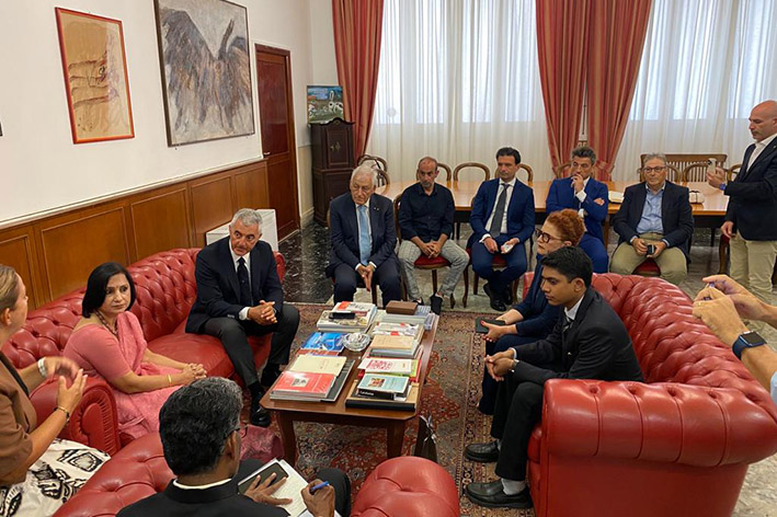 Alghero. L’Ambasciatrice indiana Neena Malhotra rafforza i rapporti commerciali con la Sardegna. Mercoledì mattina è stata accolta per una visita ufficiale ad Alghero, presso gli uffici di Porta Terra, alla presenza del sindaco Mario Conoci e della vicesindaca Giovanna Caria. Con loro la delegazione guidata da Bastianino Casu, presidente della Confcommercio regionale, e dalla vicepresidente della Camera di Commercio del Nord Sardegna e presidente regionale della Confartigianato Maria Amelia Lai. Formazione, economia, università, nuovi rapporti e scambi commerciali: questi gli argomenti dibattuti con l’Ambasciatrice che ha proseguito il suo percorso verso l’azienda Sella & Mosca per incontrare una delegazione di imprese che rappresentano il mondo imprenditoriale del nord-ovest dell’Isola. Giornata che terminerà con una visita guidata per scoprire le bellezze della città di Alghero e del suo territorio. «Un incontro importante, foriero di nuove opportunità, che permetterà di capire quali sono i settori di maggiore interesse e le possibilità di scambio, ed apre le porte a vantaggi economici importanti, ha sottolineato Mario Conoci. Tra l’ambasciatrice indiana Neena Malhotra e il sindaco di Alghero uno scambio di doni e la firma con dedica nel Libro d’Onore.