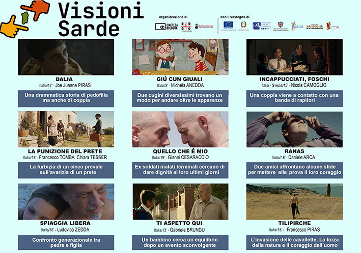 La rassegna sarà articolata in due giornate e vedrà la proiezione dei cortometraggi “Dalia” di Joe Juanne Piras, “Giù cun Giuali” di Michela Anedda, “Incappucciati, Foschi” di Nicola Camoglio, “Quello che è mio” di Gianni Cesaraccio, ” La punizione del prete” di Francesco Tomba e Chiara Tesser, “Ranas” di Daniele Arca, “Spiaggia libera” di Ludovica Zedda, “Ti aspetto qui” di Gabriele Brundu, “Tilipirche” di Francesco Piras.