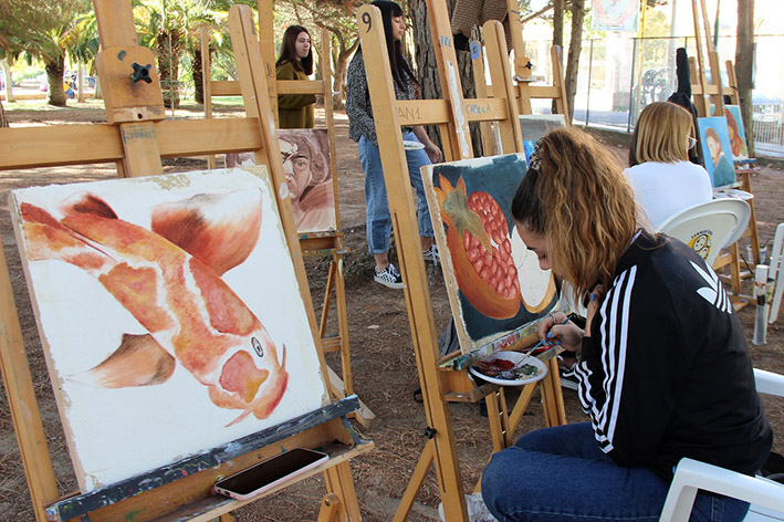 «Solitamente – ha spiegato Cupiraggi – gli studenti dipingono su carta, tela e legno. Questa è un’opportunità straordinaria per mettersi alla prova, e lo hanno fatto egregiamente. Sono davvero soddisfatto dei risultati». Il verde del parco dedicato a Maria Carta si è pian piano arricchito di colori. Sui cavalletti sono spuntate graziose nature morte, fantasie ispirate ad anime giapponesi, ritratti caravaggeschi e di Van Gogh, e c’è persino chi ha riprodotto fedelmente il volto del giovane cantante Mahmood. Al fianco degli studenti si sono cimentati con entusiasmo anche alcuni artisti come Maria Sulas e Marco Gallistu.