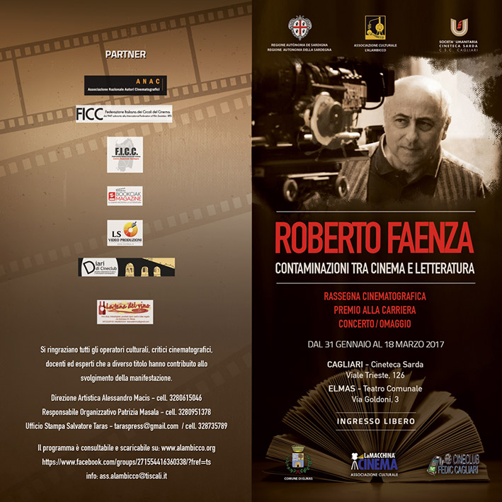 Il 17 marzo Faenza arriverà a Cagliari per dialogare, a partire dalle ore 18,30, con Antonello Zanda in occasione della presentazione del libro “Roberto Faenza. Un regista scomodo” (Falsopiano edizioni) a cura di Ignazio Senatore.