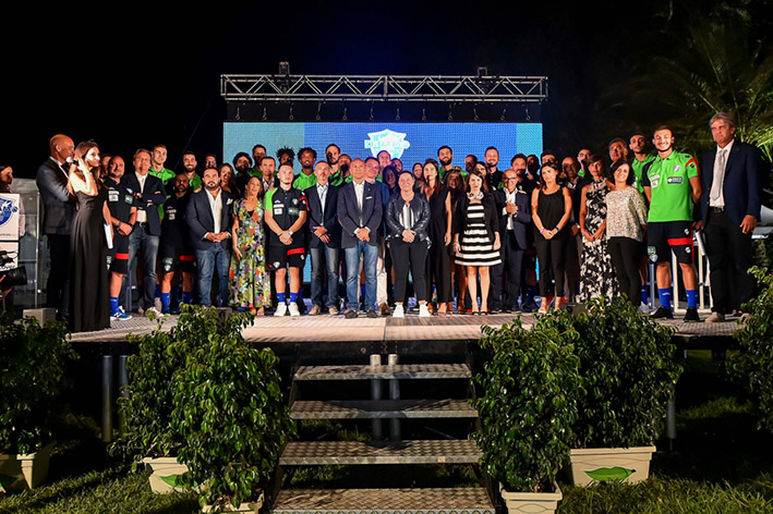 Come di consueto sul palco del parco sul laghetto delle tenute alcuni rappresentanti dei numerosi sponsor biancoblu tutti presenti in platea da sostenitori appassionati e attenti del club e grandi protagonisti insieme ai giganti dei successi della Dinamo. Aprendo con il direttore generale del main sponsor Banco di Sardegna, Giuseppe Cuccurese, a ricordare una partnership lunga trent’anni e che guarda già al futuro con il rinnovo triennale annunciato nei mesi scorsi. Proseguendo con Silvia Del Sole, responsabile Comunicazione e Brand di Reale Mutua, partner solido e longevo; Rossella Iandolo, Procurement Vice President di Air Italy, che ha appena rinnovato il sodalizio per i prossimi tre anni; il direttore generale della Fondazione di Sardegna, Carlo Mannoni; il responsabile Marketing di prodotto e comunicazione Tiscali, Cristiana Mura; il direttore della centrale di Fiume Santo di EP Produzione Paolo Appeddu e l’amministratore unico di EYE sport, Alessandro Ariu, tutti a sottolineare l’importanza della condivisione di valori e degli obiettivi, nello sport e nelle realtà del business, parte imprescindibili di un progetto vincente.