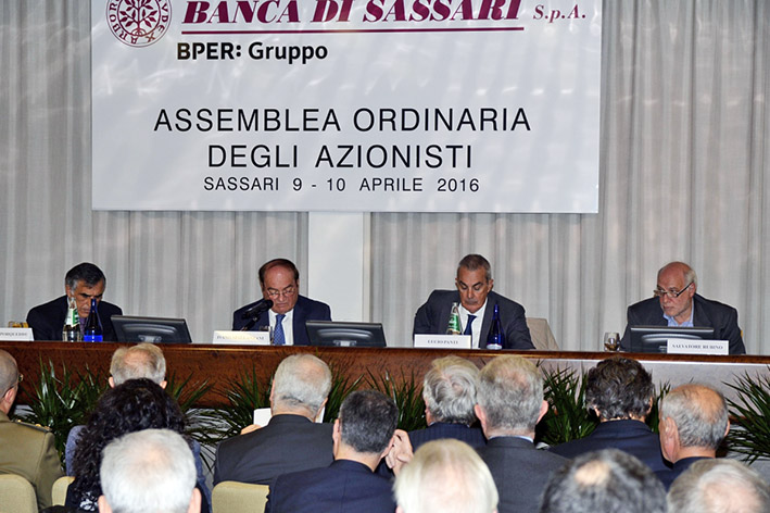 Sassari. Si è svolta nei locali della Promocamera di Sassari l’Assemblea ordinaria degli Azionisti della Banca di Sassari presieduta dal Ivano Spallanzani. All’assemblea erano presenti le autorità civili e militari del territorio, numerosi esponenti dell’imprenditoria sarda e i rappresentanti delle associazioni di categoria e dei consorzi fidi. Due i punti all’ordine del giorno discussi e approvati dall’Assemblea: bilancio di esercizio al 31 dicembre 2015: delibere inerenti e conseguenti; presentazione delle “Politiche di Remunerazione 2016 del Gruppo Bper” e della proposta del relativo piano di compensi basato su strumenti finanziari; presentazione dell’informativa sulle modalità di attuazione delle Politiche di Remunerazione 2015; deliberazioni inerenti e conseguenti.