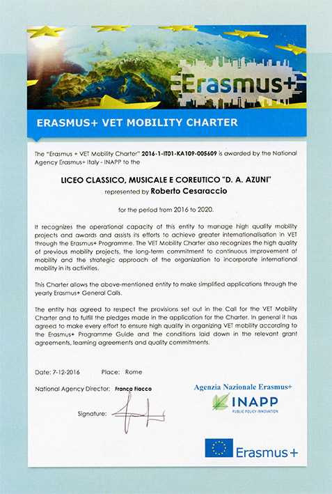 Carta della Mobilità Erasmus+ al Liceo Azuni