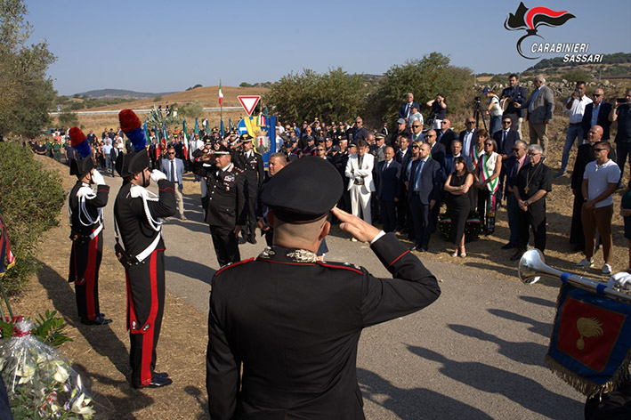 Inizialmente in località Ped’e Semene, alla presenza dei familiari dei due valorosi carabinieri e delle autorità, tra le quali i parlamentari Barbara Polo e Dario Giagoni, il prefetto di Sassari Grazia La Fauci, il sindaco Marco Peralta, del comandante della Legione Carabinieri Sardegna generale di divisione Stefano Iasson sono stati resi gli onori alle due lapidi poste in memoria della Strage di Chilivani, azione criminale a seguito della quale rimase ucciso l’appuntato Ciriaco Carru, originario di Bitti, e il carabiniere scelto Walter Frau, originario di Ossi, entrambi in servizio presso il Nucleo Radiomobile dei Carabinieri.