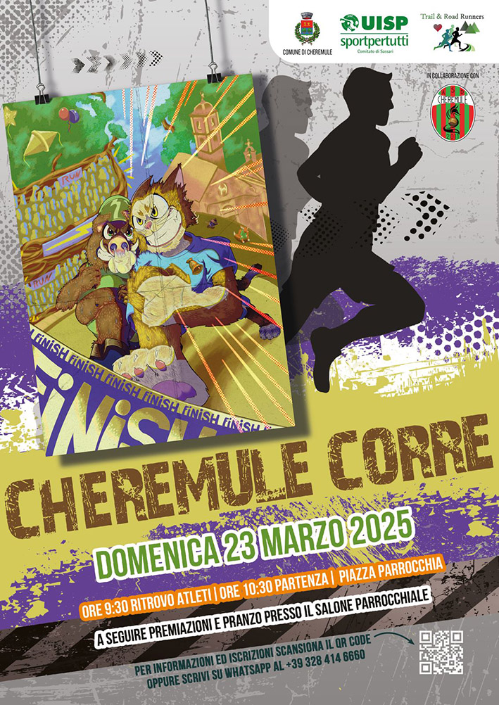 L’evento, nato dalla volontà dell’Amministrazione Comunale di Cheremule, si propone di unire sport e divertimento, coinvolgendo partecipanti di tutte le età. La manifestazione prevede un percorso affascinante che si snoda tra le bellezze del centro storico e della pineta del monte Cuccuruddu, permettendo ai partecipanti di scoprire paesaggi mozzafiato e il calore della comunità locale. Gli atleti potranno sfidarsi in una gara di corsa, mentre le famiglie e i partecipanti più giovani potranno godere dell’attività ludico motoria, un’opportunità per divertirsi insieme in un’atmosfera festosa. L’evento sarà accompagnato da attività collaterali, dallo stand gastronomico presso il salone parrocchiale e intrattenimenti, creando un’atmosfera di festa che coinvolgerà tutti i presenti.