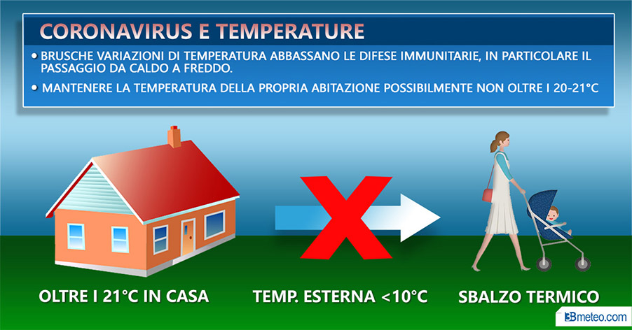 2 – COME REAGISCE LA RISPOSTA IMMUNITARIA AL CORONAVIRUS IN FUNZIONE DEL CLIMA? – Entrando più nello specifico della risposta immunitaria, «una prima linea di difesa dell’organismo è costituita dalle cosiddette ciglia vibratili – prosegue il professor Bassetti – che tappezzano le nostre vie respiratorie e respingono gli organismi che arrivano da gola e naso, a seguire vi sono le tonsille. Il clima freddo può inibire la loro azione e, considerando che il Coronavirus entra attraverso le vie respiratorie, un clima mediamente più caldo può favorirne invece la difesa». Un altro importante fattore che abbassa le difese immunitarie è costituito da repentine e brusche variazioni di temperatura, ad esempio quando usciamo da una abitazione troppo calda verso un ambiente esterno decisamente più freddo. «Il riscaldamento nelle case dovrebbe essere regolato tra 18°C e 20°C, non a 24-25°C, altrimenti lo shock termico sarà maggiore e inficerà maggiormente il sistema immunitario».