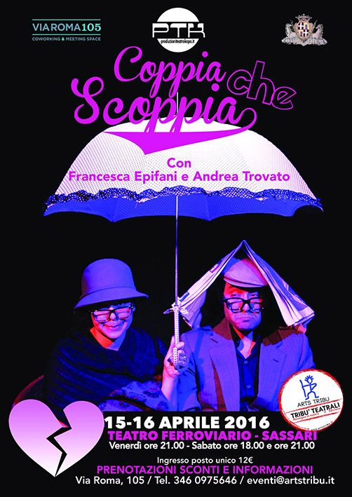 In “Coppia che Scoppia” i due attori, Francesca Epifani, attrice vincitrice del prestigioso Premio Hystrio, e Andrea Trovato interpreteranno un vastissimo carosello di personaggi, inseriti in altrettante situazioni paradossali, sotto la regia di Simona Epifani. Lo spettacolo, che ha debuttato la scorsa stagione a Roma ed è stato replicato con successo, ottenendo grandi consensi di pubblico e critica, approda per la prima volta in Sardegna, in esclusiva per il pubblico sassarese.