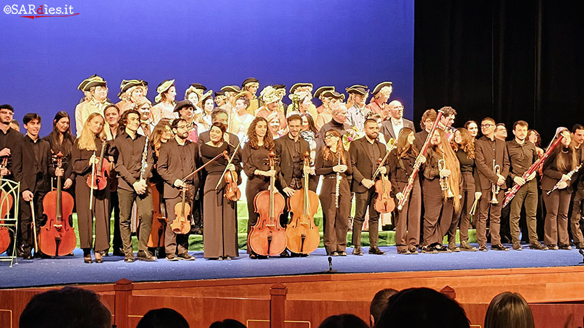 Sassari. Con una doppia rappresentazione (sabato 8 febbraio e domenica 9) di “Così fan tutte”, uno dei capolavori operistici di Wolfgang Amadeus Mozart, su libretto di Lorenzo Da Ponte, il Conservatorio musicale “Luigi Canepa” di Sassari ha inaugurato l’anno accademico 2024-25. Un appuntamento che è ormai entrato nella tradizione e che i sassaresi ben gradiscono. E se in passato era l’angusta Sala Sassu del Conservatorio a ospitare la cerimonia, da qualche anno a questa parte è il Teatro Comunale che apre le porte a un evento che comprende una parte istituzionale e poi un concerto. O un’opera, come quest’anno per la seconda volta. Se nel 2023 era stato proposto “L’elisir d’amore” di Gaetano Donizetti, stavolta la scelta è caduta sull’ultimo titolo in ordine cronologico del trittico mozartiano su testi di Lorenzo da Ponte. Caposaldo dell’opera buffa, “Così fan tutte” non necessita di molte presentazioni. Si sa che è un capolavoro e che la musica che il genio di Salisburgo compose nel 1789-90 si colloca al top. Del resto, Mozart, autore completo che spaziava con felici risultati in tutti i generi, è stato, senza alcun dubbio, il più grande operista della storia. “Così fan tutte” è forse, rispetto a “Le nozze di Figaro”, “Don Giovanni” e “Il Flauto Magico” (che in realtà è uno singspiel), un’opera meno convincente sul piano del soggetto (che, secondo una vulgata mai confermata, sarebbe stato suggerito dall’imperatore Giuseppe II prima ad Antonio Salieri e poi lasciato a Mozart) l’infedeltà femminile. Definitivamente superate nel corso del XX secolo le perplessità che si presentarono già dalle prime rappresentazioni e che per buona parte del 1800 portarono a una uscita di fatto dal repertorio dei maggiori teatri, oggi “Così fan tutte” è una delle opere più rappresentate (fonte Operabase). Merito, come detto, soprattutto della musica. Ma, analizzandolo a fondo, è anche il libretto, con il ricorso a una lingua lontana dalla tradizione ricercata del melodramma, a contribuire a conferire al capolavoro mozartiano un carattere di freschezza artistica che manca invece a composizioni di autori di epoche successive.