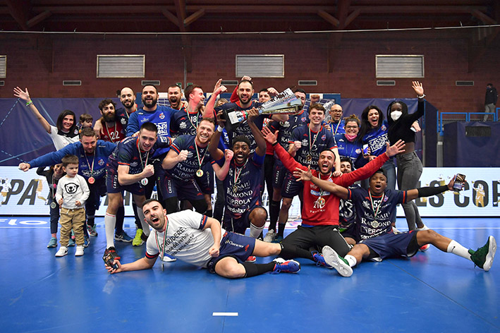 Salsomaggiore. La Raimond Handball Sassari si aggiudica il primo titolo della sua storia. Dopo meno di un lustro dalla sua fondazione, la società rossoblù scrive il suo nome nell’Albo d’Oro di una competizione nazionale, portando in Sardegna la Coppa Italia. Al termine di una partita infinita e ricca di emozioni, i rossoblu portano a casa il primo trofeo di una squadra sarda maschile. Non sono bastati settanta minuti per decretare la vincitrice, alla serie dai sette metri decisivo Marco Spanu, capace di far trionfare i sardi con la parata decisiva su Nelson.