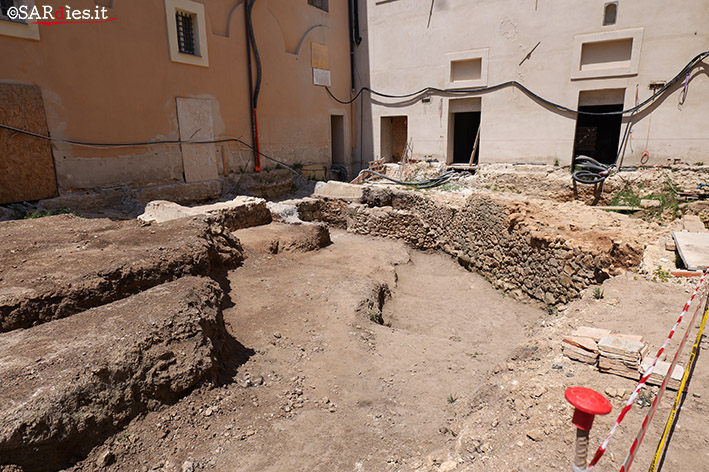 Cosa si nascondeva allora sotto la terra? Va detto che sono state riportate alla luce diverse stratificazioni complesse che comprendono strutture murarie medievali, canalizzazioni, impianti produttivi, discariche, sepolture e resti di una possibile torre. I materiali più recenti documentano fasi comprese tra la fine del XV e il XVII secolo, gettando nuova luce sulla nascita del Collegio Gesuitico, nucleo originario dell’Università di Sassari. Tra le scoperte più significative si citano i possibili resti di una cinta muraria medievale, con due fasi distinte; una struttura rettangolare con blocchi bugnati, forse una torre quadrangolare, la cui presenza era ipotizzata da una tavola storica di Enrico Costa (1899); depositi funerari e strati legati a lavorazioni artigianali.