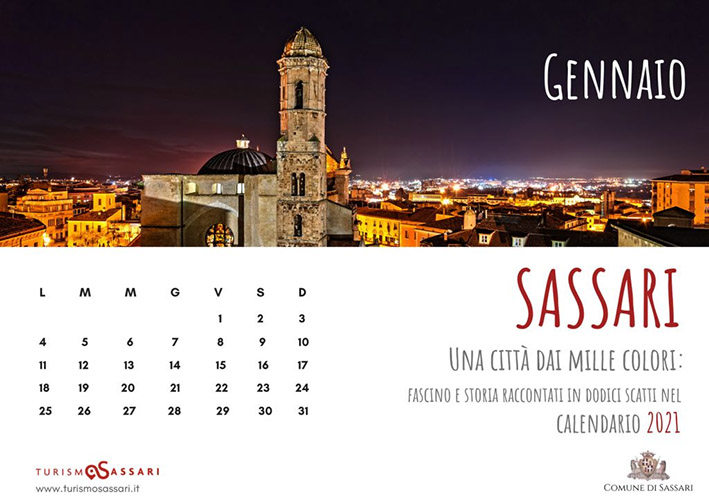 Sassari. Il Comune ha deciso di dare il benvenuto al 2021 con un piccolo dono. Sul sito www.turismosassari.it è possibile scaricare la grafica – creata dal settore Cultura – di un calendario con le foto più significative di Sassari: in dodici scatti il racconto, il fascino e la storia del territorio.