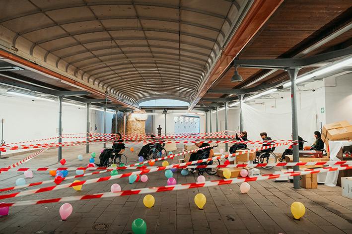 Domenica 7 è stata la volta di “Missione Roosevelt” la performance itinerante firmata Tony Clifton Circus e Teatro Necessario Circo che ha condotto pubblico e partecipanti nel cuore di un esperimento urbano fuori dagli schemi. Partita da un luogo segreto, la performance ha attraversato le vie del centro storico trasformando la città in un terreno di gioco, sorpresa e riflessione. Gli spettatori e i passanti, inizialmente incuriositi da questa insolita “missione”, si sono presto ritrovati a osservare una lunga fila di partecipanti in sedia a rotelle, organizzati come un piccolo plotone in marcia. Una visione in grado di generare reazioni contrastanti: molti hanno sorriso, altri hanno espresso stupore o smarrimento, altri ancora si sono avvicinati con delicatezza, mossi da una forma spontanea di empatia.