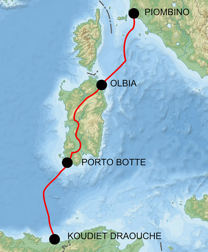 Cagliari. Da notizie di stampa si apprende di un accordo del Governo con l’Algeria per lo studio e la realizzazione del gasdotto Galsi, che dovrebbe trasportare, oltre a metano, idrogeno, ammoniaca ed elettricità.