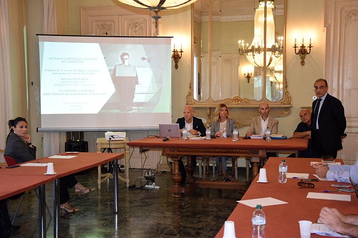 Aspetti analizzati dai relatori, tutti e tre ispettori del lavoro della Direzione regionale, Silvia Serra (Il controllo a distanza dallo Statuto dei Lavoratori al Jobs Act), Gabriele Cauli (La circolare INL 5/2018: Indicazioni operative sull’installazione e utilizzazione di impianti audiovisivi e di altri strumenti di controllo ai sensi dell’art. 4 della Legge 300/1970) e Roberto Usai (Stretta interazione tra l’articolo 4 della legge n.300/1970 e la normativa in materia di protezione dei dati personali).