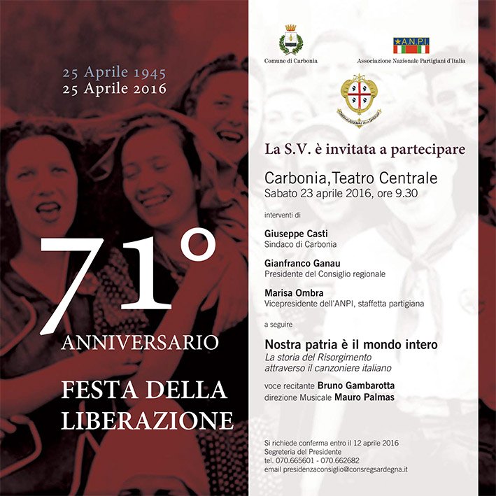 «Prosegue il percorso che abbiamo avviato lo scorso anno con le celebrazioni per il 25 Aprile, organizzate a Nuoro al teatro Eliseo – sottolinea il presidente del Consiglio, Gianfranco Ganau – volto a promuovere la massima apertura dell’Assemblea sarda al territorio e alle sue comunità. Quest’anno abbiamo scelto Carbonia perché questo territorio ha subito, forse più di altri, le drammatiche conseguenze della crisi e per questo merita tutta la nostra attenzione».