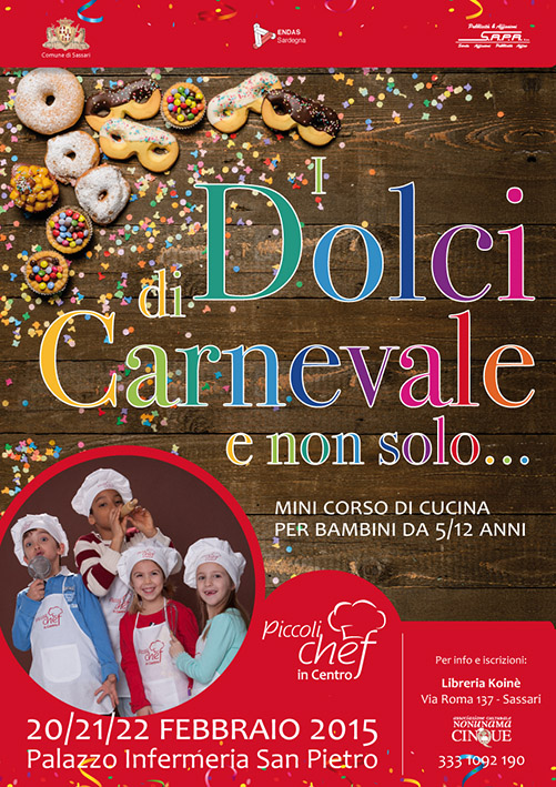 Sassari. Tre giorni tra frittelle, fatti fritti, chiacchiere, castagnole e bignè: chi non vorrebbe trovarsi al posto dei “Piccoli chef” per l’appuntamento di Carnevale? Un’altra golosa avventura aspetta i bambini sassaresi in uno dei luoghi più suggestivi del Centro storico. Il mini-corso di cucina per giovanissimi dai 5 ai 12 anni, stavolta farà tappa nei locali del Palazzo Infermeria San Pietro, messi a disposizione dal Comune nel cuore della città.