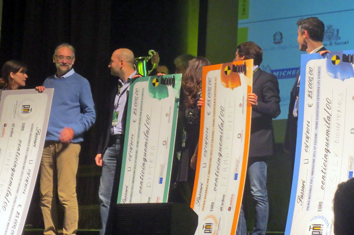 Sassari. La start up innovativa vincitrice del Premio Nazionale per l’Innovazione 2014 è Silk biomaterials (settore Life Sciences) proveniente dalla competizione regionale Start Cup Milano Lombardia. L’idea imprenditoriale, che ha convinto i giudici riuniti al Teatro Verdi di Sassari per la XII edizione del PNI, si propone di sviluppare dispositivi medici impiantabili per il mercato della medicina rigenerativa, grazie a una nuova tecnologia in grado di unire elementi micro- e nano- fibrosi realizzati in seta. Silk Biomaterials si ha vinto la coppa dei campioni PNI. Le altre tre idee, che, come “Silk Biomaterials”, si sono aggiudicate 25mila euro ciascuna, sono Fermo!Point (settore ICT), Diptera (Agrifood Cleantech) e Smart Patch (Industrial).