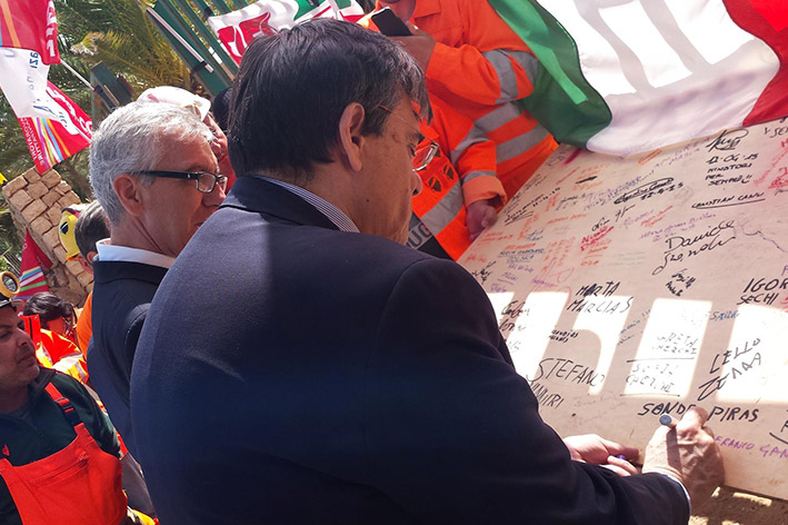 All’incontro con gli operai erano presenti anche i consiglieri regionali Luigi Lotto (PD) e Michele Azara (Sardegna Vera).