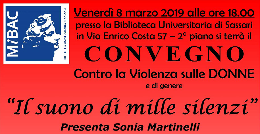 Venerdì 8 marzo in occasione della Festa della donna la Biblioteca Universitaria di Sassari propone nella sua sede di piazza Fiume un convegno contro la violenza di genere