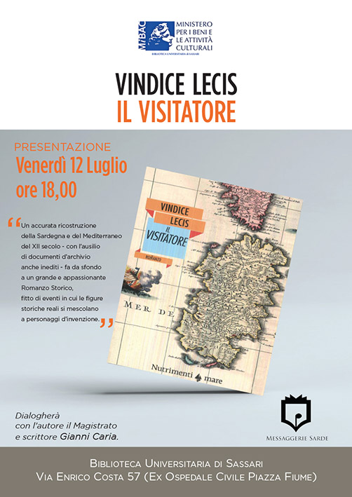 Sassari. La Biblioteca universitaria di Sassari venerdì 12 luglio alle 18, al piano terra di via Enrico Costa n. 57 (ex Ospedale civile piazza Fiume), propone il nuovo libro di Vindice Lecis “Il Visitatore”. Dialogherà con l’autore il magistrato e scrittore Gianni Caria. Evento in collaborazione con Messaggerie Sarde.