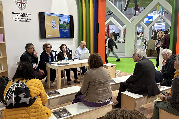 Proseguono intanto gli eventi nello stand istituzionale della Regione Sardegna, per la maggior parte curati dagli editori sardi, presenti al Lingotto anche con un proprio stand grazie al sostegno della Fondazione di Sardegna. In primo piano l’archeologia con il libro “Domus de janas, arte e religione nelle tombe ipogeiche della Sardegna preistorica” (Carlo Delfino editore), curato dall’archeologo Alberto Moravetti con le fotografie di Nicola Castangia. Moravetti ha tracciato la storia degli studi che hanno interessato le “domus” dai primi pioneristici lavori all’intensificarsi degli scavi degli ultimi cinquant’anni. La sala Sardegna ha inoltre ospitato la presentazione della prima di una serie di guide archeoastronomiche in italiano e inglese – disponibile anche nella versione bilingue sardo e inglese – edita da Mediando e dedicata al sito di Pranu Muttedu a Goni. Il volume indaga sugli orientamenti astronomici dei monumenti legati agli equinozi e solstizi: con Giuseppa Tanda hanno discusso sul tema Simonetta Castia per l’editrice Mediando, Michele Forteleoni della Società astronomica turritana e l’astrofisico Alberto Cora, approfondendo il simbolismo delle popolazioni preistoriche nella collocazione di pietre infitte e aree cultuali connesse al calendario e al moto dei pianeti. Con “I giganti di Mont’e Prama” (Carlo Delfino), degli archeologi Raimondo Zucca e Giacomo Paglietti, si raccontano le scoperte che dagli anni Settanta hanno portato alla luce le affascinanti statue nella zona di Cabras: un’area funeraria i cui misteri sono ancora da chiarire, come ha spiegato l’archeologo Giorgio Murru presentando il volume. Così come c’è molto da scoprire anche nell’area di Fusti ‘e Carta, nei pressi di Tertenia, nel volume “Sulle strade d’Ogliastra” (Taphros) di Paola Mancini, che illustra la storia di un sito che ha resistito per un millennio, dal IV secolo avanti Cristo al VI dopo Cristo, scoperto per caso durante i lavori di realizzazione dell’Orientale sarda: alla presentazione, oltre all’autrice, sono intervenuti il soprintendente ai beni archeologici di Sassari e Nuoro Bruno Billeci e il responsabile della Struttura territoriale Anas Sardegna Francesco Ruocco.