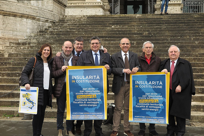 «Lo Stato riconosce il grave e permanente svantaggio naturale derivante dall’insularità e dispone le misure necessarie a garantire una effettiva parità ed un reale godimento dei diritti individuali e inalienabili». È questo il testo della norma per il progetto di iniziativa popolare, modifica dell’articolo 119 della Costituzione, depositata dal Comitato “Insularità in Costituzione”. Tra i firmatari del verbale del deposito della proposta di legge nazionale di iniziativa popolare anche il presidente del Consiglio regionale Gianfranco Ganau.