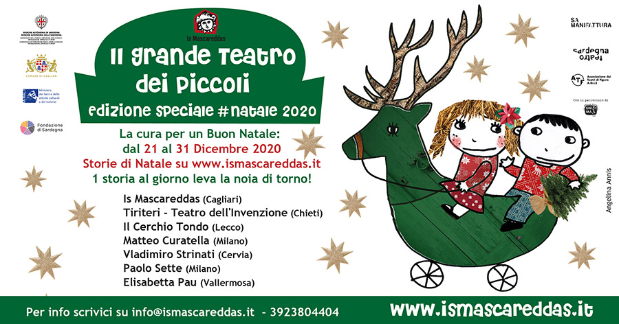 Cagliari. Undici storie natalizie. Undici racconti da vedere accoccolati sul divano. Undici doni che Is Mascareddas fa al suo pubblico durante le festività. Andrà in scena tutti i giorni, dal 21 al 31 dicembre, sul sito internet di Is Mascareddas, “Il Grande Teatro dei Piccoli”. Una formula speciale per la XVIII edizione della storica rassegna di teatro di figura dedicata alle famiglie.