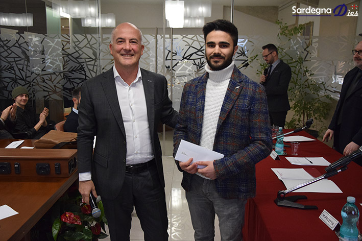 Giovedì mattina il presidente della Banca di Sassari Mario Mariani ha consegnato il premio a Davide Manca per la sua opera nell’ambito del progetto artistico inaugurato lo scorso ottobre.