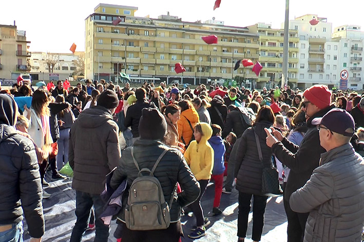 Alghero. Più di 600 cuscini “tirati” addosso da bambini e genitori, più qualche nonno. Un po’ di divertimento non guasta mai, a tutte le età. È “la battaglia dei cuscini”, che ieri, domenica 3 settembre, ha aperto la XXI edizione di FestivAlguer, il festival internazionale di arti performative della città catalana, ideato e allestito da ExPopTeatro. Lo spettacolo delle “cuscinate” ha registrato tanto entusiasmo nel piazzale della Pace di Alghero, un evento che gira l’Italia dal 1991, ideato da Gimmi Basilotta e Marina Boero della compagnia teatrale di Cuneo “il Melarancio”. Ad animare lo show sono stati Gimmi Basilotta, Marina Berro, Jacopo Fantini, Isacco Basilotta e Aicha Cherif con musiche di Sisimizi, Persiana Jones e I Fratelli di Soledad.