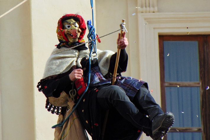 Rinnovato il tradizionale appuntamento con la vecchina che si è calata dal Palazzo della Provincia per distribuire caramelle ai bambini
