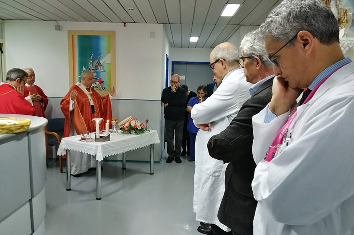 Un evento che, in questi anni, è diventato un appuntamento fisso e che vede una grande partecipazione di pazienti e di operatori. E questa mattina erano in tanti alla messa concelebrata in reparto dall’arcivescovo di Sassari, monsignor Gian Franco Saba, con i cappellani dell’Aou, don Piero Bussu e padre Eugenio Pesenti.