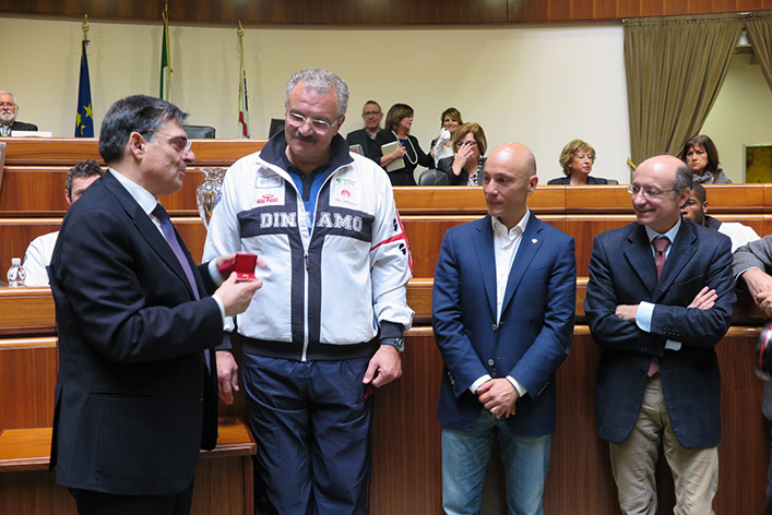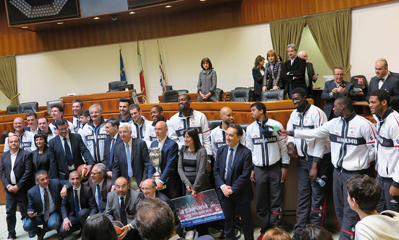 DinamoConsReg3«Un ringraziamento doveroso – ha sottolineato il presidente Ganau – per i successi straordinari raggiunti e per quello che state facendo ogni giorno, rappresentando al meglio la Sardegna in Italia, in Europa e nel mondo. Portate con voi la nostra terra e ora anche le vostre divise rappresentano appieno la nostra identità, grazie alla scelta di stampare l’immagine dei Giganti di Mont’e Prama. E la seconda volta che abbiamo il piacere e l’onore di ospitarvi qui nella casa di tutti i sardi – ha aggiunto il presidente Ganau – questa volta scegliendo uno spazio inusuale per questo genere di appuntamenti – l’aula consiliare – perché quando possibile credo che anche i luoghi istituzionali debbano essere utilizzati fuori dalla ritualità».