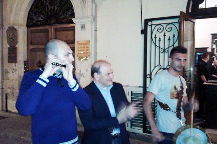 ViandantiSindacoDinamo.jpgIeri, subito dopo la vittoria, anche il sindaco ha voluto festeggiare con i sassaresi la conquista dello scudetto: prima in piazza d’Italia con il rettore Massimo Carpinelli sul palco, allestito per il concerto conclusivo delle lauree in piazza e sul quale cantavano i Train to roots. Quindi si è unito alla folla e accolto dai rappresentanti del Gremio dei Viandanti nei portici Crispo ha ballato con loro la danza tipica dei Candelieri.
