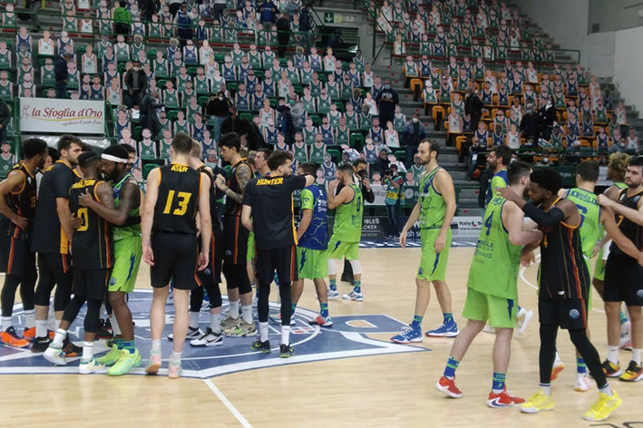 Nel post partita ad aprire il commento nella conferenza stampa in diretta è il giocatore Filip Kruslin, autore di 11 punti e di due triple di importanza capitale nell’ultimo quarto. «Voglio prima di tutto congratularmi con la squadra e lo staff – ha esordito Filip Kruslin –. Era fondamentale partire bene in Basketball Champions League, vincere contro una squadra come il Galatasaray vale ancora di più. Siamo sempre rimasti in controllo della partita sin dal primo tempo nonostante qualche difficoltà nel secondo. Ognuno di noi ha dato il contributo a questa vittoria e questa è la cosa più importante. I miei due tiri? Non credo sia stata quella la chiave, l’importante è vincere e lo abbiamo fatto di squadra. Questa è l’unica cosa che conta». Non cela la soddisfazione coach Gianmarco Pozzecco per la vittoria dei suoi ragazzi: «Devo fare i complimenti al Galatasaray, non è facile viaggiare in un periodo come questo e son sicuro che la pandemia possa togliere concentrazione. I nostri avversari son stati molto bravi e ci hanno messo in difficoltà fino alla fine. Per quanto riguarda i miei sono molto contento perché abbiamo diversi giocatori alla prima esperienza in una coppa europea e in questi casi le strade sono due: partire molto concentrati o farsi prendere dalla tensione. I miei penso siano stati bravi a partire tutti estremamente concentrati dall’inizio della partita senza farsi coinvolgere dalla pressione. Prima della partita avevo chiesto unità di intenti e sfrutto l’occasione per ribadire che io non voglio che i giocatori facciano contento me, devono essere loro quelli contenti. Il mio ruolo è quello di indicare loro la strada e voglio che tutti vadano nella stessa direzione. Oggi tutta la squadra ha giocato con gli stessi intenti, son contento per Tillman e Pusica ma in generale per tutti, le ultime due partite mi hanno soddisfatto al di là del risultato. Sono davvero contento».