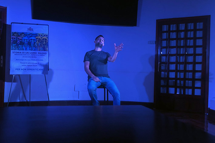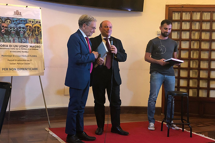 Sassari. «Nella casa delle istituzioni, nella casa di tutte e tutti, è stato lanciato un messaggio che attraversa ogni forza politica, un messaggio veicolato dall’arte. Non si può dimenticare e non si può ripetere. La nostra deve essere una militanza culturale». Con queste parole il sindaco Nicola Sanna ha presentato martedì sera, a Palazzo Ducale, lo spettacolo “Storia di un uomo magro”, scritto, diretto e interpretato da Paolo Floris.