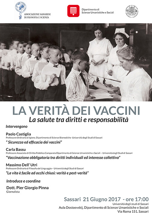 L’iniziativa, organizzata dall’Associazione sassarese di Filosofia e Scienza in collaborazione col Dipartimento di Scienze Umanistiche e Sociali dell’Università di Sassari, si propone di indagare le questioni sollevate dal dibattito in corso sui vaccini, anche alla luce della recente approvazione del decreto contenente norme in materia di prevenzione vaccinale per i minori da zero a 16 anni.