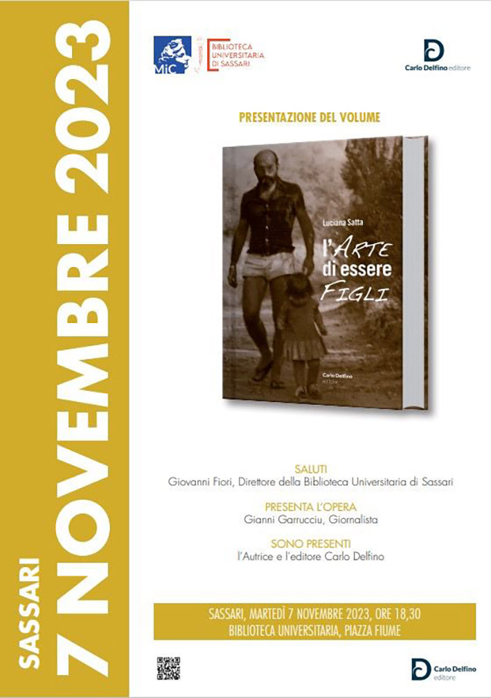Sassari. Martedì prossimo 7 novembre, alle 18,30, nella Biblioteca Universitaria di Sassari (in piazza Fiume) il giornalista Gianni Garrucciu presenterà per la prima volta al pubblico il libro “L’Arte di essere figli” di Luciana Satta, edita da Carlo Delfino. Oltre all’autrice e all’editore, sarà presente il direttore della Biblioteca Universitaria, Giovanni Fiori.