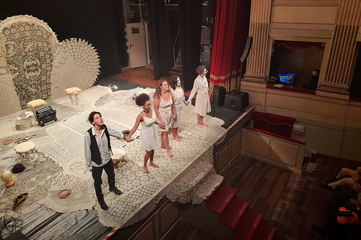 Alghero. Sotto le insegne del CeDAC per la Stagione di Prosa 2021-2022, domenica e lunedì scorsi al Teatro Civico di Alghero, con un doppio sold out, è andato in scena lo spettacolo “Le allegre comari di Windsor” di William Shakespeare, adattamento Edoardo Erba. Quest’ultimo ha visto protagoniste le ottime attrici: Annagaia Marchioro, Chiara Stoppa, Cristina Parku, Virginia Zini e alla fisarmonica Giulia Bertasi. La scrittura di Edoardo Erba e la regia di Serena Sinigaglia sono riusciti a riadattare, con ottima maestria, e ironia Le allegre comari di Windsor, innestando brani, suonati e cantati dal vivo dal Falstaff di Verdi. In scena sono comparsi solo alcuni dei protagonisti di Shakespeare, ovvero la signora Page, la signora Ford, la giovane Anne Page e la serva Quickly, che hanno dato parola anche ai personaggi maschili, assenti ma molto presenti: mariti, amanti, e, soprattutto, il più grande, non solo per stazza, Falstaff. Da lui tutto comincia e con lui tutto finisce. Le lettere d’amore che il Cavaliere invia identiche alle signore Page e Ford sono lo stimolo per trasformare il solito barboso e very british pomeriggio di tè in uno scatenato gioco dell’immaginazione, del desiderio, del divertimento. Proprio su questo gioco di battute, di gag e di travestimenti, il pubblico algherese si è proprio divertito tra grasse risate e tantissimi applausi a scena aperta per brave attrici che meritano palcoscenici di grande prestigio.