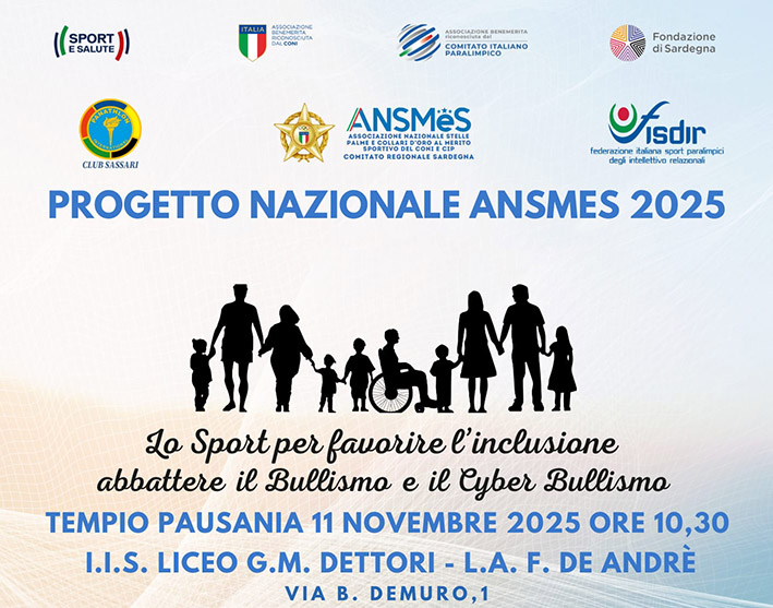 Nei giorni scorsi l’IIS Liceo Dettori di Tempio ha ospitato una iniziativa promossa da ANSMeS Sardegna dedicata al tema “Lo sport per favorire l’inclusione”. Abbattere il bullismo e il cyberbullismo è un tema di stretta attualità e si inserisce in un progetto di ANSMeS nazionale dedicato allo sport e ai connessi stili di salute e di vita.