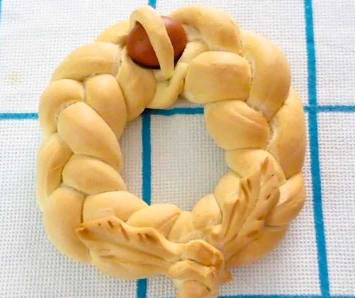 In chisthu pani, chi pudia piglià la foimma d’agnoni, di curomba, di pesciu, di fiori, e cussì althri foimmi, si punia un obu (calche voltha era a tosthu) i’ lu cummassu, e si fazia cuzì i’ lu forru a legna. Erani dì di festha chissi. Pa tutta la chedda si priparabani fintzamenta li dotzi, ma lu cotzuru era propiamenti un rigaru bonu pa li pitzinni in chissa dì santa.