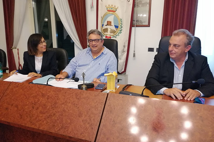 Da sinistra la segretaria comunale Debora Fonnesu, il presidente Mario Mura e il sindaco Antonio Diana