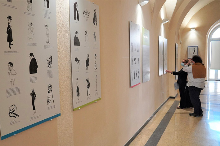Al piano terra si dispiega un percorso che dispone creativamente, entro un caleidoscopico carosello danzante, una serie ricchissima di pupazzetti, riprodotti e accostati con garbo minimalista nella loro esplosiva e impattante verve estetica e testuale. Nelle teche figurano, quale essenziale supporto didascalico, a puntuale contrappunto, gli originali di una parte dei circa quaranta periodici al centro del progetto di ricerca iconografica.