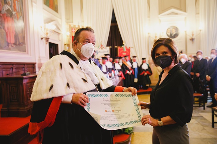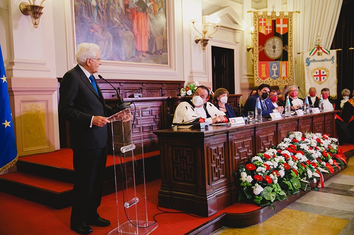 La cerimonia è proseguita nell’Aula magna con gli interventi del rettore, del presidente della Regione Christian Solinas, della ministra dell’Università Maria Cristina Messa e del professor Omar Chessa, che ha tratteggiato un profilo di Enrico Berlinguer “L’eredità morale e politica di Enrico Berlinguer”. Al termine ha preso la parola il presidente Sergio Mattarella.