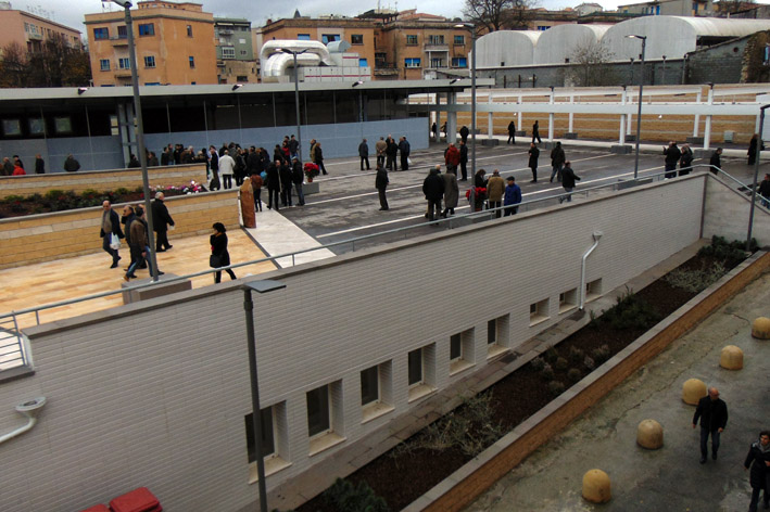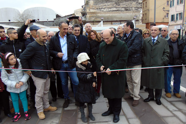 Sassari. Da ieri mattina i sassaresi hanno una nuova piazza, un luogo di ritrovo a due passi dalla Fontana del Rosello, simbolo della città. Lo spazio sopra il Mercato Civico accoglierà anche eventi musicali e ricreativi. Sabato, poco dopo le 11, il sindaco Nicola Sanna ha tagliato il nastro e scoperto la stele che riporta il nome di “Piazza del Mercato”. Insieme al primo cittadino, agli assessori della sua Giunta e ad ai consiglieri comunali di maggioranza e di opposizione accompagnati dal presidente Antonio Piu, c’erano anche il predecessore alla guida di Palazzo Ducale Gianfranco Ganau e gli ex assessori comunali ai Lavori pubblici, Luigi Lotto e Salvatore Demontis, tra i protagonisti della realizzazione dell’opera. Ha partecipato anche l’assessore regionale ai Lavori Pubblici Paolo Maninchedda, accompagnato dall’assessore comunale Ottavio Sanna (Lavori Pubblici e Manutenzioni).