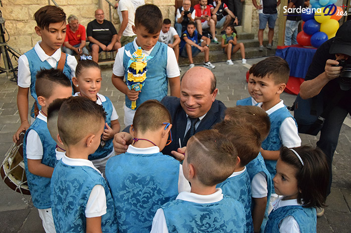 In piazza Santa Maria l’augurio del sindaco Nicola Sanna e l’intervento del presidente dell’Intergremio Salvatore Spada. Subito dopo il guardiano del Convento francescano padre Silvano Bianco, ha invitato tutti i presenti a recitare l’Ave Maria. Presenti anche gli assessori Antonio Piu, Alessandro Boiano e Amalia Cherchi e Valeria Fadda, consigliere comunale. L’evento è stato coordinato dal vicepresidente dell’Intergremio Marco Dettori, insieme ai delegati dell’organismo gremiale. A ciascun giovanissimo capocandeliere sono state consegnate, con l’incarico di distribuirle ai portatori del proprio cero, le medaglie ricordo. Al termine, i classici palloncini, i fuochi d’artificio e il “ballo” di tutti i minicandelieri.
