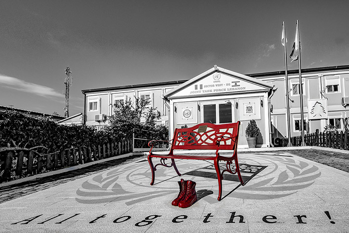 E lo ha fatto sistemando due stivaletti da combattimento ai piedi di una panchina, entrambi verniciati di rosso, che sono stati posizionati all’ingresso della palazzina comando della base Onu di Shama, quartier generale del settore Ovest di Unifil.